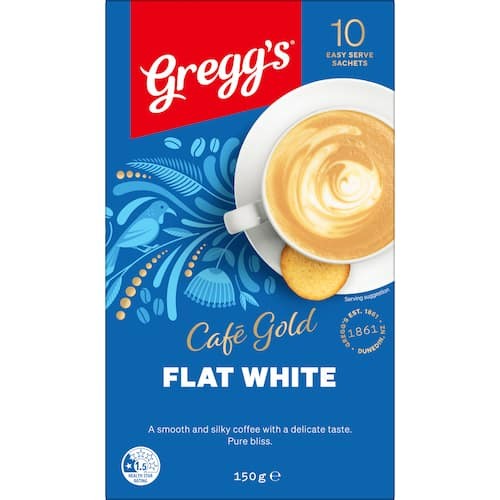 greggs cafe gold coffee mix flat white 150g 10 sachets